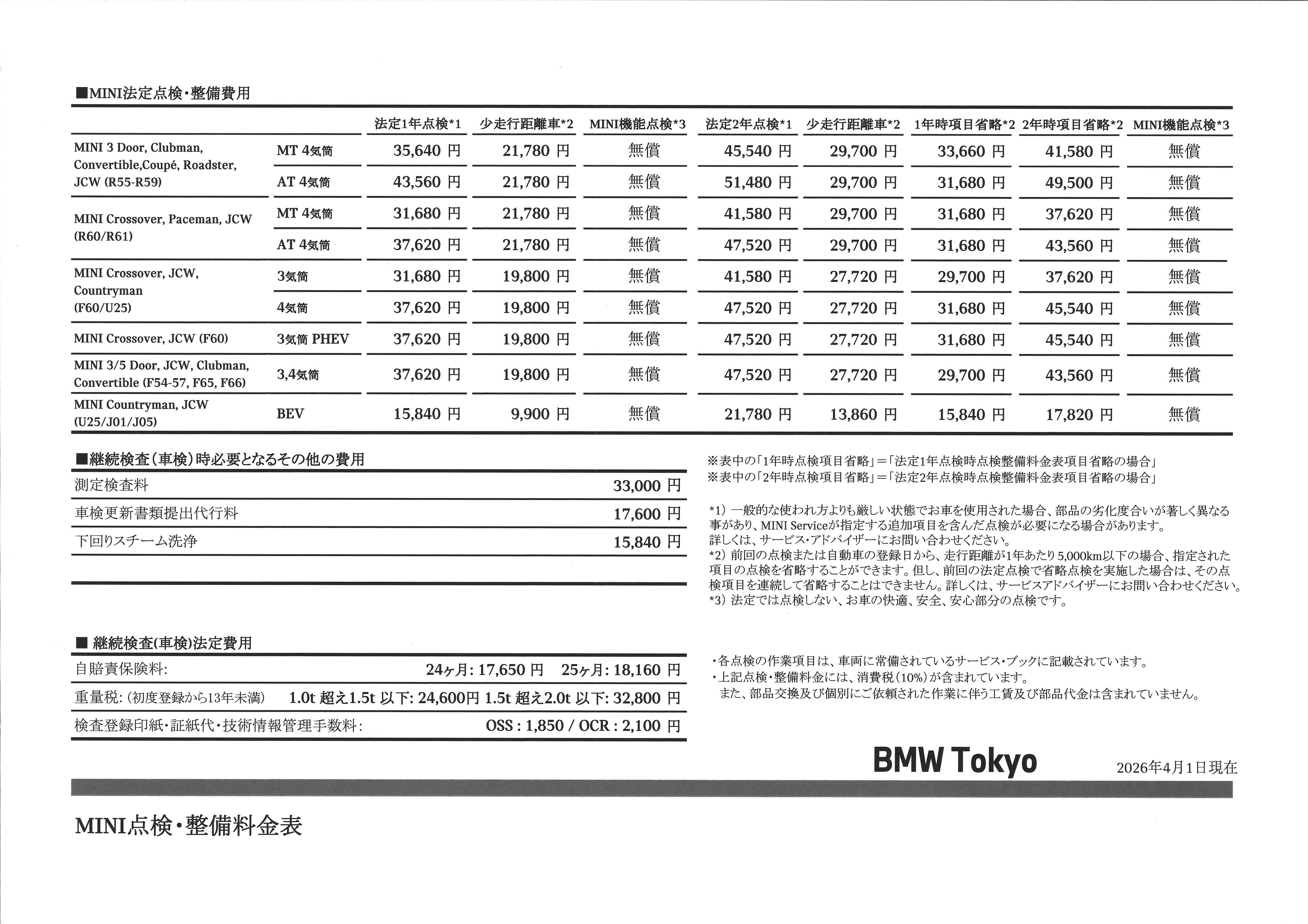 ※点検整備料金表の詳細については、サービス・アドバイザーにお問い合わせください。